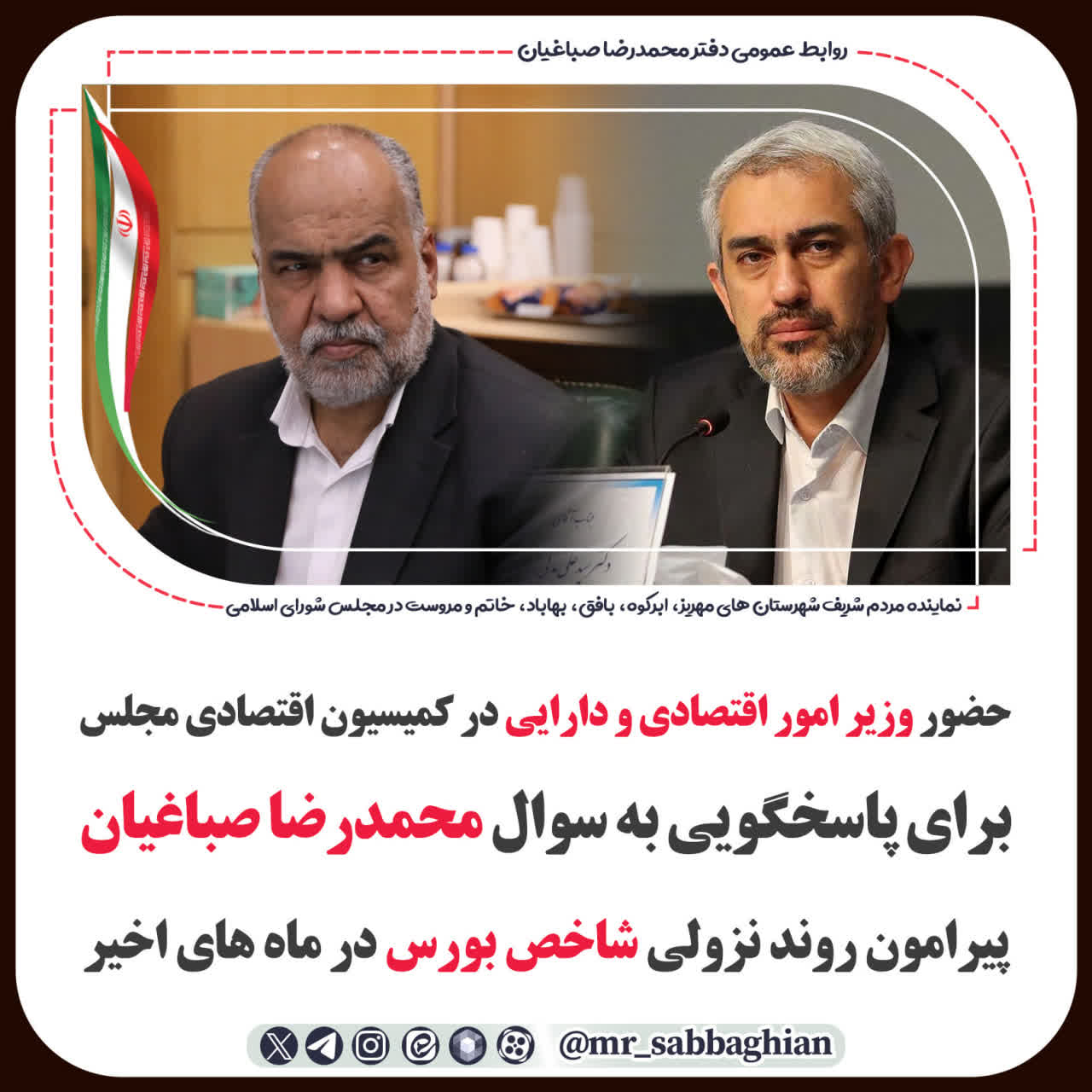 🔸 وزیر امور اقتصادی و دارایی در پاسخ، گزارشی از اقدامات صورتگرفته و موانع موجود در مسیر سرمایهگذاری در بازارهای مالی کشور ارائه داد. با این حال، صباغیان با تأکید بر لزوم ارائه گزارش جامعتر، مهلت یکهفتهای به وزیر داد تا گزارش کامل نموداری و ارقامی شامل تعداد سهامداران بورس روند شاخص رشد کاهش ارزش سهام میزان سهامداران خصولتی و خصوصی به تفکیک در بورس و اقدامات انجامشده برای حفظ حقوق سهامداران و بیمه آنان و برنامههای آینده را به کمیسیون اقتصادی ارائه کند.