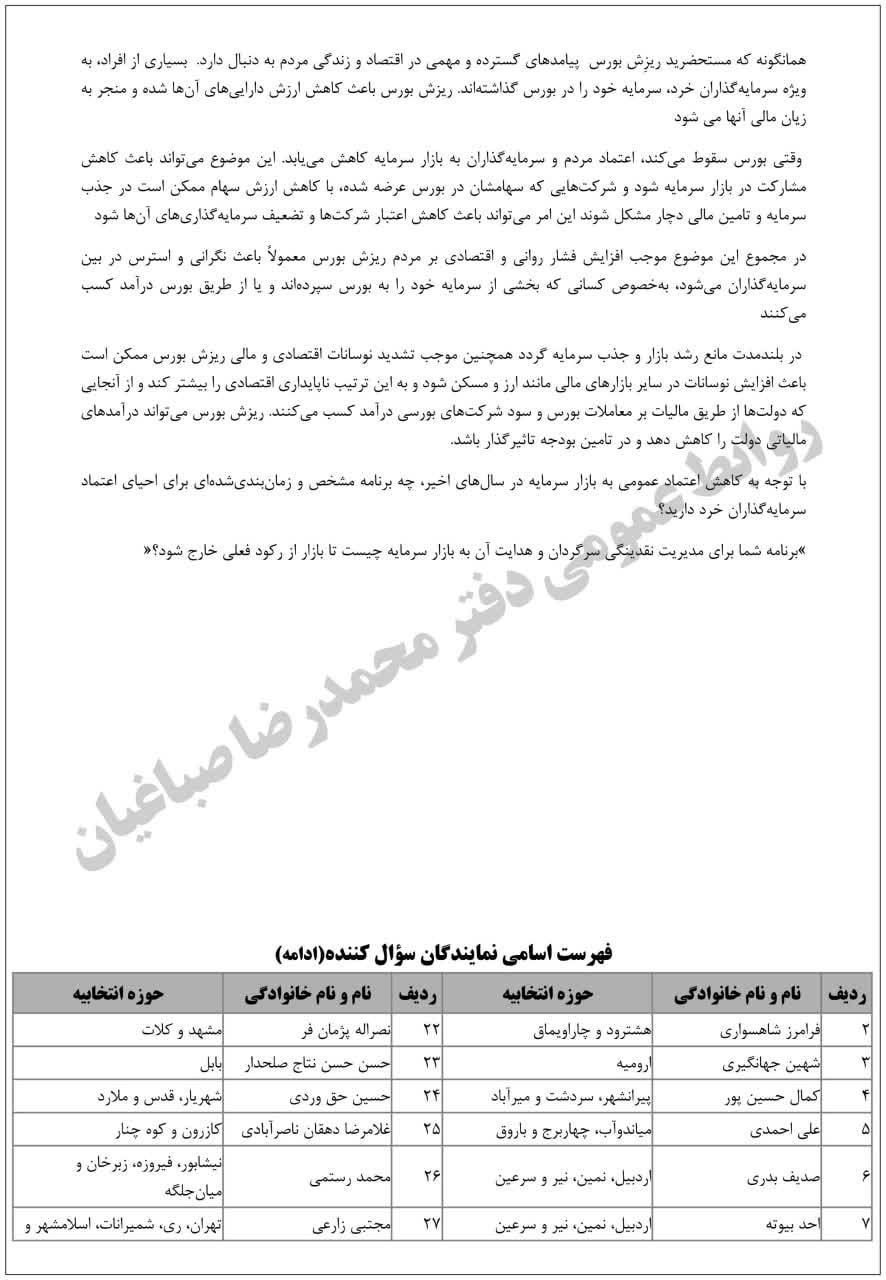📌 لازم به ذکر است که خلاصه و متن سوال محمد رضا صباغیان به شرح ذیل می باشد: